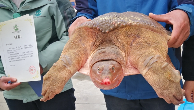 近日,鄲城縣自然資源局接到縣城市管理局公園管理辦公室工作人員救助電話,稱在人民公園岸邊又發(fā)現(xiàn)一只“大老鱉”。接到救助電話后,該局領(lǐng)導立即指派野生動植物保護和自然保護地管理股工作人員前往現(xiàn)場救助?!?a href="http://m.thebachelorsreview.com/content/2021-03/23/content_925978.html" target="_blank" >[詳細]