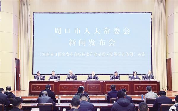 2月28日,周口市人大常委會(huì)召開新聞發(fā)布會(huì)。市人大常委會(huì)、市司法局、河南周口國(guó)家農(nóng)高區(qū)管委會(huì)及農(nóng)高區(qū)核心區(qū)鄲城縣政府、縣人大常委會(huì)等多部門負(fù)責(zé)人表示,將合力把《河南周口國(guó)家農(nóng)業(yè)高新技術(shù)產(chǎn)業(yè)示范區(qū)發(fā)展促進(jìn)條例》(以下簡(jiǎn)稱《條例》)學(xué)習(xí)好、宣傳好、落實(shí)好,為河南周口國(guó)家農(nóng)高區(qū)高質(zhì)量發(fā)展提供堅(jiān)實(shí)有力的法治保障,為率先建成農(nóng)業(yè)強(qiáng)市、推進(jìn)鄉(xiāng)村全面振興作出新的更大的貢獻(xiàn)。[詳細(xì)]