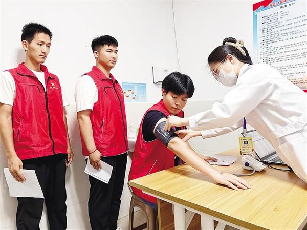 體檢現(xiàn)場,應(yīng)征青年統(tǒng)一穿著紅馬甲,手持體檢指引單、廉潔征兵公開信,排著整齊的隊伍,逐個科室參加體檢。醫(yī)生現(xiàn)場檢查、現(xiàn)場告知結(jié)論、現(xiàn)場簽字確認(rèn)、現(xiàn)場錄入體檢結(jié)果,在體檢結(jié)束后發(fā)放體檢結(jié)論告知書。