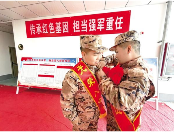 近日,在周口市扶溝縣舉行的新兵歡送會上,雙胞胎兄弟劉為宇(左一)、劉翔宇身著戎裝、胸戴紅花,成為全場焦點。