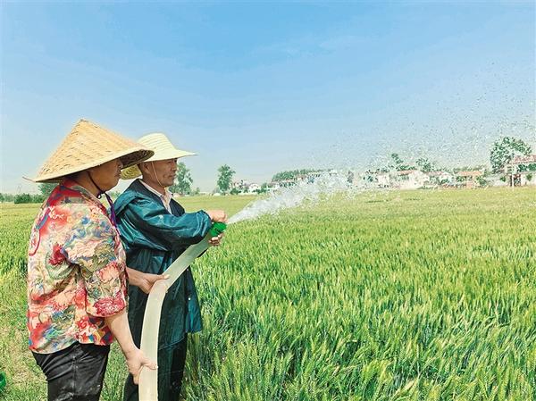 近日,記者在沈丘縣趙德營鎮(zhèn)碧綠的麥田里看到,一臺臺噴灌機(jī)均勻地噴灑“甘露”,喝足水的麥苗在微風(fēng)中搖曳?!把巯抡敌←湷樗霌P(yáng)花期,我們通過科學(xué)調(diào)度、全員參與等舉措,確保讓小麥喝足灌漿水。目前,全鎮(zhèn)已累計(jì)完成6.5萬畝小麥的灌溉作業(yè)?!?趙德營鎮(zhèn)鎮(zhèn)長楊曉麗望著一望無際的麥田開心地說。