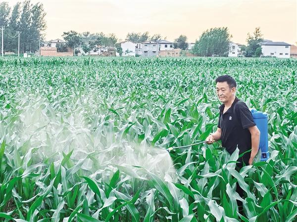 連日來,我市持續(xù)出現(xiàn)高溫天氣,為防治病蟲害,確保秋糧豐收,沈丘縣積極引導(dǎo)群眾加強(qiáng)田間管理。圖為卞路口鄉(xiāng)一名群眾為玉米噴灑農(nóng)藥。