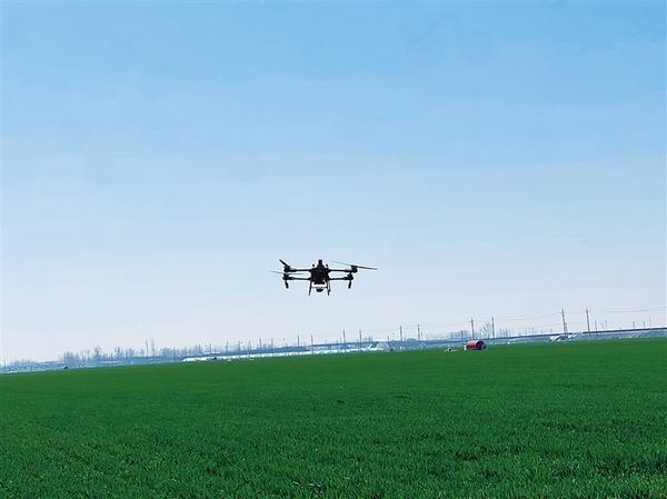 小麥春管正當(dāng)時,科技賦能助力豐收。近日,黃泛區(qū)農(nóng)場利用無人機為小麥噴灑農(nóng)藥,大大提高了作業(yè)效率,省時省力又省心,為農(nóng)業(yè)插上了科技翅膀。