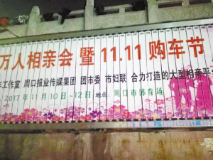 11月12日,由市委組織部、共青團(tuán)周口市委、市婦聯(lián)、周口報(bào)業(yè)傳媒集團(tuán)主辦的周口首屆大型相親會(huì)暨雙11購(gòu)車(chē)節(jié)圓滿落幕?!?a href="http://m.thebachelorsreview.com/content/2017-11/15/content_591402.htm" target="_blank" >[詳細(xì)]