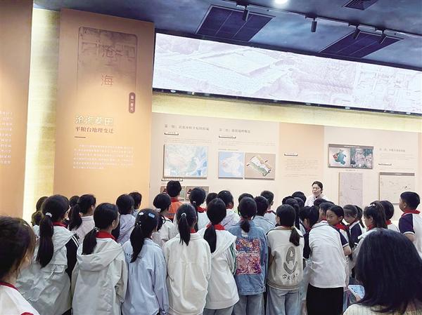 5月23日,學(xué)生在平糧臺(tái)古城遺址博物館內(nèi)參觀。當(dāng)日,淮陽(yáng)一小學(xué)師生走進(jìn)平糧臺(tái)古城遺址,走進(jìn)這片承載著幾千年文明的土地,參加了一場(chǎng)別開(kāi)生面的“行走的課堂——考古研學(xué)”活動(dòng)。