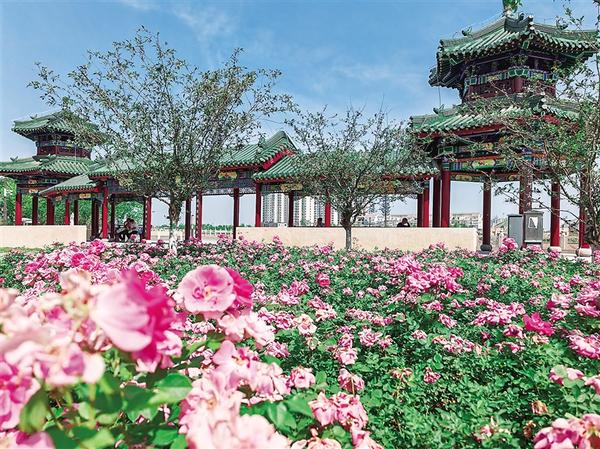 中心城區(qū)八一大道與濱河南路交叉口西側游園內月季花盛開。近日,在中心城區(qū)多條提升改造的道路中間及兩側的綠化帶內,“棒棒糖”月季花和地栽刺玫花如約盛開。