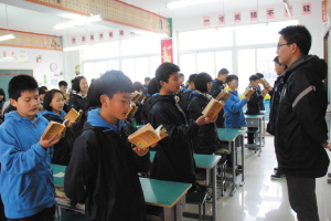 班主任帶領(lǐng)學(xué)生進(jìn)行課前經(jīng)典誦讀