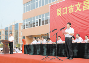 2012年,乘著周口市委“科教興周戰(zhàn)略”的東風(fēng),由周口市委、市政府、市東新區(qū)管委會(huì)傾力打造,投資3億元?jiǎng)?chuàng)辦的周口市文昌中學(xué)應(yīng)運(yùn)而生。市委書(shū)記徐光親筆為該校題下“礪學(xué)弘文、昌達(dá)天下”的校訓(xùn)。