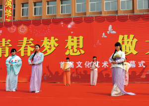該校把特色教育作為發(fā)展的名片,推出“一班一品一特色”活動(dòng)。學(xué)校建立以班級(jí)為單位的社團(tuán)組織,并細(xì)分為體育類(lèi)、舞蹈類(lèi)、樂(lè)器類(lèi)、美術(shù)類(lèi)四大類(lèi)別,共70個(gè)社團(tuán)。比如:美工社團(tuán)制作漢服進(jìn)行表演,每一次都讓在場(chǎng)的觀眾潸然淚下,為自己是一個(gè)漢唐中華子孫而驕傲,為著漢唐服裝而自豪。學(xué)校出版了《求真大課堂》《走在成長(zhǎng)的路上》《花季無(wú)悔》《中學(xué)生科技創(chuàng)作》《班主任德育思想錄》《國(guó)學(xué)之蘊(yùn)》《家和萬(wàn)事興》《共創(chuàng)一個(gè)夢(mèng) 和韻文昌之家校共建》《“文昌杯”文明我先行 共筑一個(gè)夢(mèng)》主題征文作文選等校本教材。為豐富校園文化生活,學(xué)校邀請(qǐng)中國(guó)政法大學(xué)的霍登科,歷史文化學(xué)者王少清,青少年心理教育專(zhuān)家張海選、萬(wàn)禮彬,周口市中心醫(yī)院婦產(chǎn)科主任楊莉,河南國(guó)學(xué)院的施柳貞、王福琪、楊茹梅以及國(guó)內(nèi)外優(yōu)秀大學(xué)生對(duì)學(xué)生進(jìn)行國(guó)學(xué)誦讀和教育、演講比賽、法制教育、夢(mèng)想目標(biāo)教育、青春期心理和生理教育等活動(dòng)。在該校首屆“做大成教育 展青春夢(mèng)想”文化藝術(shù)節(jié)活動(dòng)中,有一項(xiàng)活動(dòng)叫珍藏十年“心愿瓶”,當(dāng)滿載學(xué)生夢(mèng)想的心愿瓶準(zhǔn)備珍藏時(shí),晴天出現(xiàn)了彩虹,讓在場(chǎng)的領(lǐng)導(dǎo)、家長(zhǎng)、學(xué)生很驚嘆,說(shuō)文昌中學(xué)的學(xué)生目標(biāo)遠(yuǎn)大,定有大才出現(xiàn)。這些有意義的活動(dòng)對(duì)廣大未成年人的身心健康起到了很好的促進(jìn)作用。