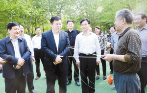 徐光一行又先后深入開發(fā)區(qū)人民廣場、星龍華緣健身場所、融輝城健身活動中心、商水縣夕陽紅健身園、周口市體育中心等地實地察看各項體育健身運動設(shè)施建設(shè)進(jìn)展情況,聽取籌備工作情況匯報,了解場館布展和開幕式準(zhǔn)備情況??吹揭患湫碌慕∩磉\動器材、一塊塊新近完善提升的健身場地,特別是正在進(jìn)行健身運動群眾的一張張笑臉,徐光滿意地點點頭,并來到市民中間,與大家親切交談,和正在健身的市民打乒乓球、試用健身器材,共同分享健身帶來的樂趣。徐光說,我市作為省十二屆“老健會”的承辦方,在時間緊、任務(wù)重、標(biāo)準(zhǔn)高、壓力大的情況下,各相關(guān)單位按照市委、市政府的安排部署,講政治、顧大局、做貢獻(xiàn),做了大量卓有成效的工作,可以說我市的全民健身場所功能得到了完善、形象得到了提升,市民參與健身活動的途徑和選擇更加方便多樣,參與健身的熱情更加高漲,市委對大家的工作是滿意的。但是,我們還要看到,我市的全民健身工作與群眾的需求還存在一定差距,必須進(jìn)一步加大投入力度,建設(shè)好、管理好、使用好相關(guān)體育健身設(shè)施,使之能夠更好地滿足群眾健身需求,服務(wù)百姓生活。