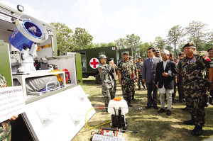 尼泊爾軍方25日在位于加德滿都的軍隊(duì)醫(yī)院大草坪舉行隆重交接儀式,感謝中國把兩套總價(jià)值5900萬元人民幣的野戰(zhàn)醫(yī)院設(shè)備贈(zèng)予尼軍。