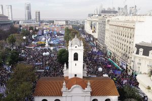 5月25日,人們在阿根廷首都布宜諾斯艾利斯的五月廣場上參加國慶日慶?;顒?dòng)。當(dāng)天,數(shù)十萬阿根廷民眾參加了在首都五月廣場舉行的盛大慶?;顒?dòng)。1810年5月25日,阿根廷爆發(fā)五月革命,推翻了西班牙南美洲拉普拉塔總督區(qū)的殖民統(tǒng)治。每年的5月25日被定為阿根廷五月革命紀(jì)念日,這一天也是阿根廷的國慶日。