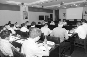 5月14日晚,周口農(nóng)行組織召開黨委中心組學(xué)習(xí)(擴(kuò)大)會(huì)議,集體學(xué)習(xí)《金融互聯(lián)網(wǎng)知識(shí)講座》、《黨建知識(shí)及上級(jí)行黨建工作有關(guān)要求》等內(nèi)容。圖為學(xué)習(xí)現(xiàn)場(chǎng)。(彭濤 攝)