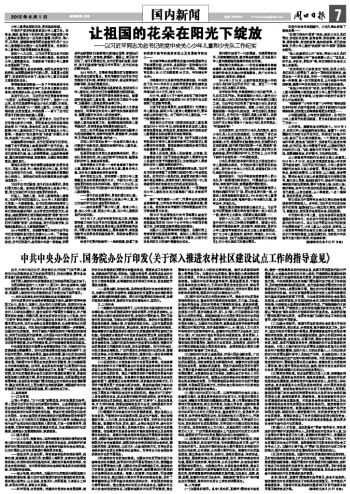 中共中央辦公廳、國務院辦公廳印發(fā)《關于深入推進農村社區(qū)建設試點工作的指導意見》