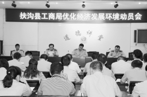 近日,扶溝縣工商局召開優(yōu)化經(jīng)濟發(fā)展環(huán)境動員會,要求全系統(tǒng)工作人員立足工商職能,多措并舉優(yōu)化經(jīng)濟發(fā)展環(huán)境,為全縣經(jīng)濟發(fā)展注入正能量。盧付昌 攝