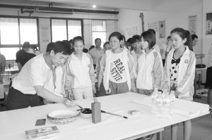 為弘揚(yáng)優(yōu)良傳統(tǒng)文化,營造熱愛書法繪畫藝術(shù)的良好氛圍,6月23日,項城市文聯(lián)邀請部分書畫家走進(jìn)項城市清華育英學(xué)校,開展了“書畫家進(jìn)課堂”活動,讓師生們充分感受到了書畫的藝術(shù)魅力,激發(fā)了大家的學(xué)習(xí)熱情。圖為書法家為該校師生示范毛筆字的寫法。