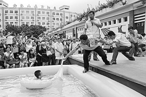 廣東省惠州市教育局高度重視學(xué)校和學(xué)生的安全管理工作,在全市預(yù)防學(xué)生溺水安全專項(xiàng)活動(dòng)中,創(chuàng)新教育形式,開展防溺水“體驗(yàn)式”教學(xué)。圖為惠州市教育局在南山學(xué)校舉辦全市中小學(xué)防溺水體驗(yàn)式教學(xué)觀摩現(xiàn)場會(huì),惠州志愿者救撈隊(duì)示范通過立式人鏈智救溺水者。    袁曙文 攝