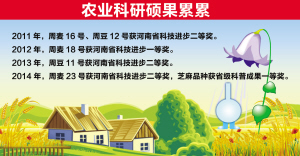 目前,全市農(nóng)業(yè)科研系統(tǒng)包括1個市級農(nóng)科院和5個縣級農(nóng)科所。全市農(nóng)科系統(tǒng)現(xiàn)有干部職工347名,其中專業(yè)技術(shù)人員161名,其中有研究員16名,副研究員29名,博士、碩士22名,享受國務(wù)院特殊津貼專家15名,省優(yōu)秀專家3名,省級學(xué)術(shù)技術(shù)帶頭人6名,市級優(yōu)秀專業(yè)技術(shù)人才24名。從以上數(shù)據(jù)可以看出,我市農(nóng)業(yè)科研人員中,專家和學(xué)科帶頭人數(shù)少,急缺博士、碩士等高層次農(nóng)業(yè)科技人才。即使在這樣的情況下,周口農(nóng)業(yè)科研人員也沒有懈怠,而是加倍付出,用自己的智慧和汗水,培育出了多個小麥和大豆新品種,獲得了一項又一項科技成果獎。五年來,市農(nóng)科院獲得的河南省科技進步獎數(shù)量穩(wěn)居河南省地市農(nóng)科院前列,主要是集中在小麥育種和大豆育種上。這主要是與我市小麥、大豆育種居國內(nèi)領(lǐng)先水平?jīng)Q定的。特別是小麥育種已成為全國優(yōu)勢學(xué)科,相繼育成30多個小麥新品種,其中12個通過國家審定,13個通過河南省審定,創(chuàng)育了享譽全國的“周麥”品牌,市場占有率高、美譽度好。2015年周麥系列品種在黃淮麥區(qū)累計推廣面積近3000萬畝,其中在河南省推廣2500萬畝,占全省小麥種植面積的28%,占周口小麥種植面積的75%,新增經(jīng)濟效益20多億元,為全省、全市小麥連年增產(chǎn)做出了突出貢獻。
