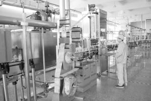 下圖:開發(fā)區(qū)因地制宜,大力發(fā)展農(nóng)副產(chǎn)品精深加工產(chǎn)業(yè)。圖為娃哈哈飲料恒楓飲料有限公司灌裝、包裝車間。