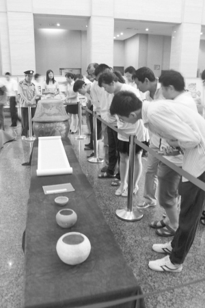 3年前,馬偉花了1萬(wàn)多元在西華縣買了一件藏品——明代坐化缸?!半m然我花了一些錢,但是私人收藏總不如讓大家共同欣賞,所以我把它捐贈(zèng)給市博物館。”馬偉說。